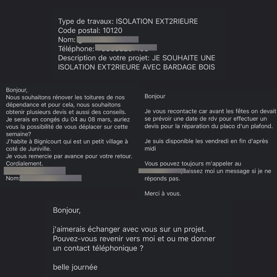 Tu as sans doute expérimenté les plateformes, elles te font miroiter une tonne de chantiers faciles à décrocher, mais souvent, ça ne marche pas car il y a 1 devis pour 10 artisans ! C'est pas viable. C'est la course au moins cher, et pas au plus doué.